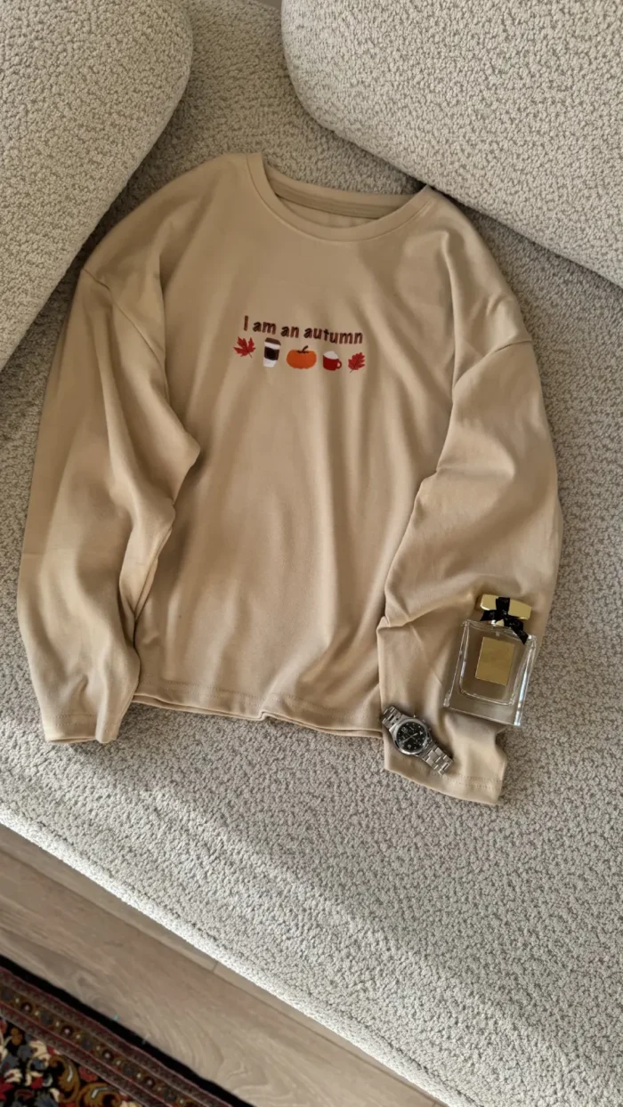 تیشرت طرح پاییز و کافی استین بلند دورو پنبه ضخیم